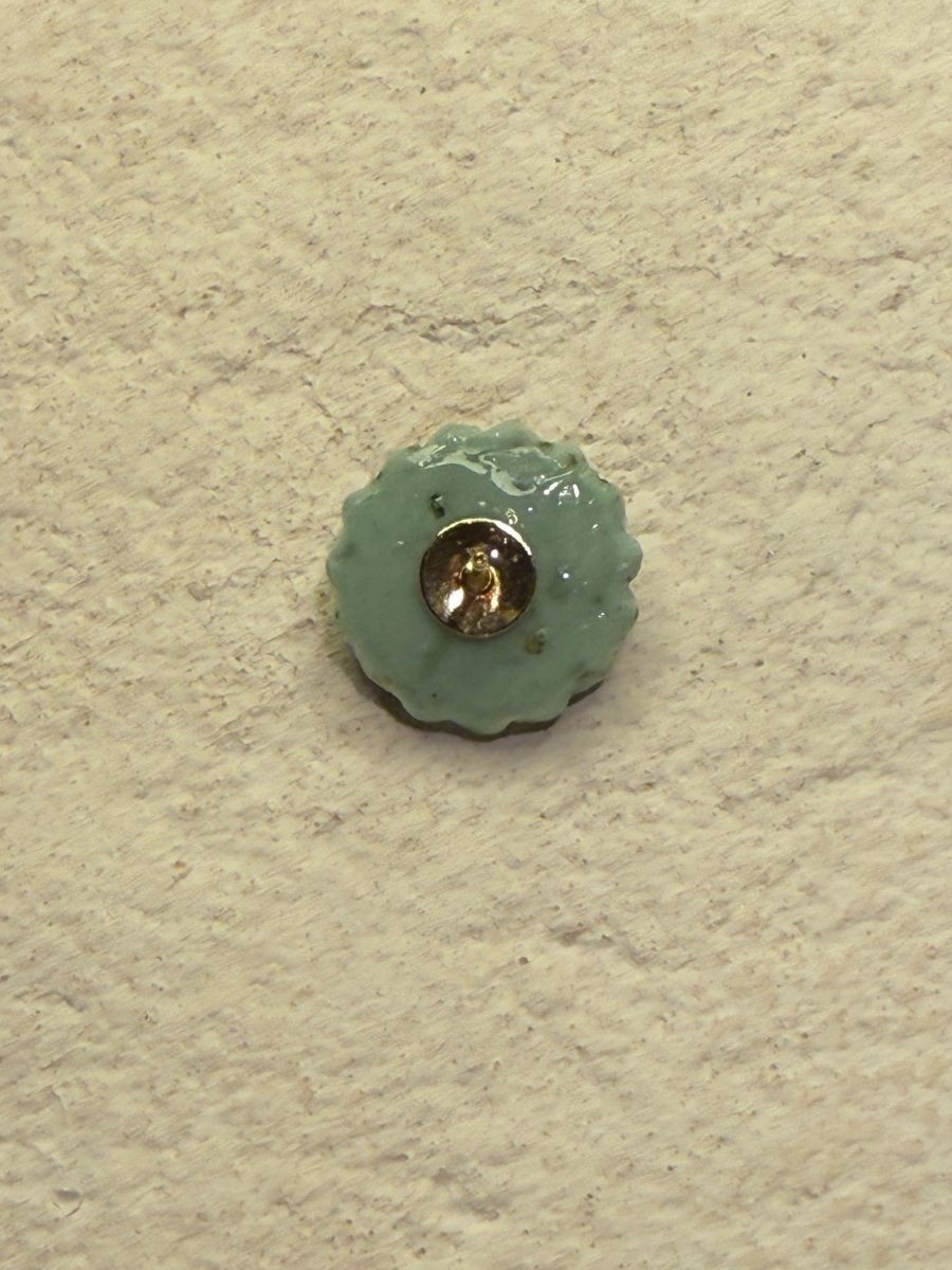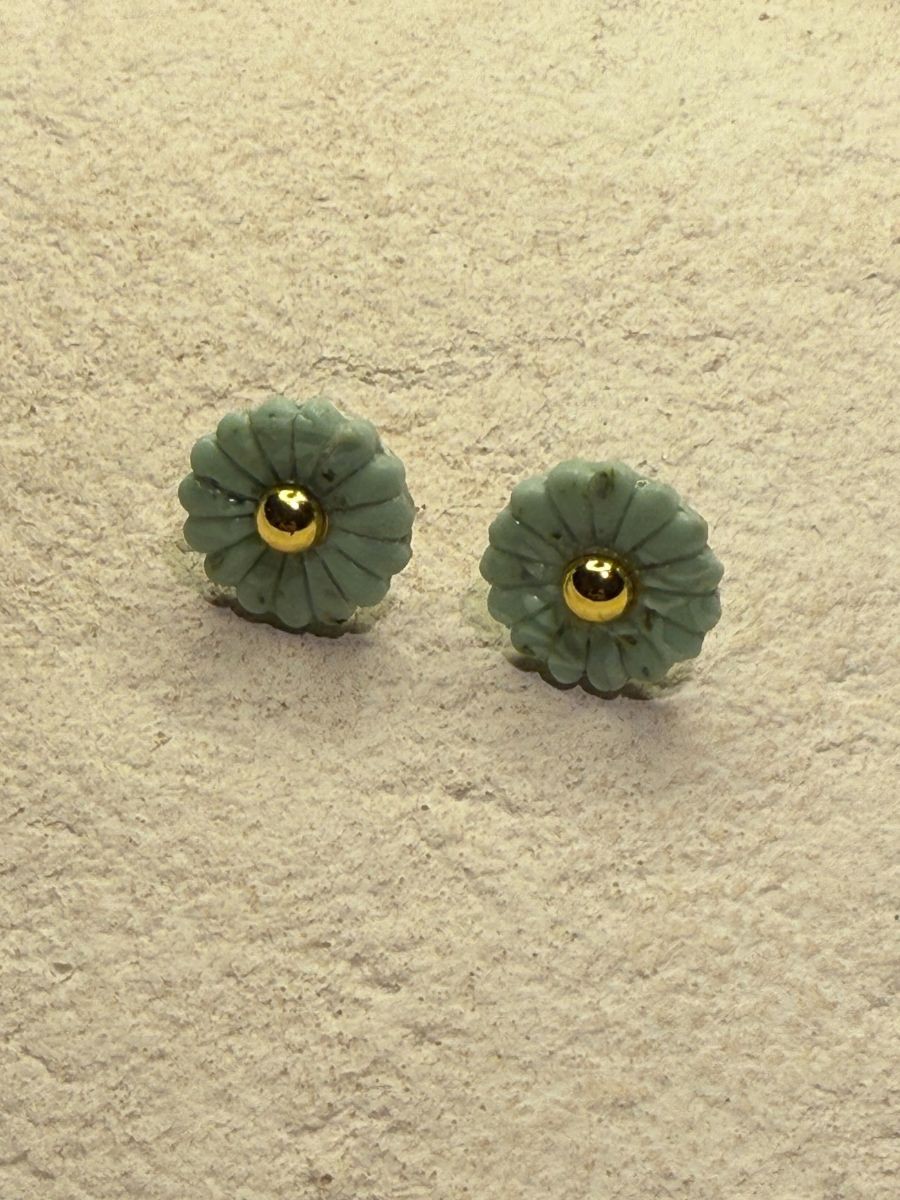 Les puces Rhodes sont vert d'eau avec une petite boule dorée au centre.